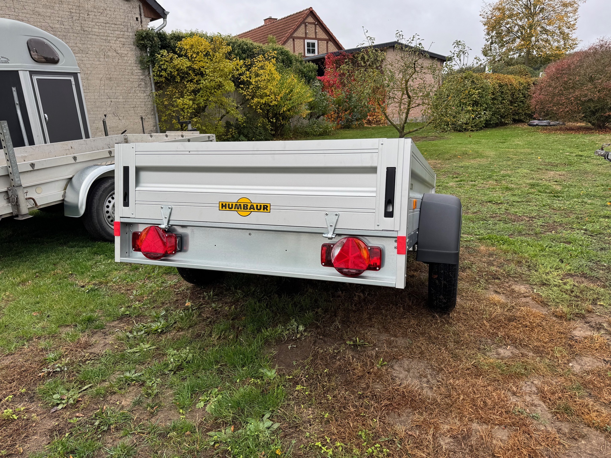 Humbaur Kastenanhänger HA 132513 KV - Alubordwände mit Klappe vorn und hinten + hochwertiger Planenaufbau Original Humbaur (kein "billig" Nachbau) sowie 2 Fallstützen.